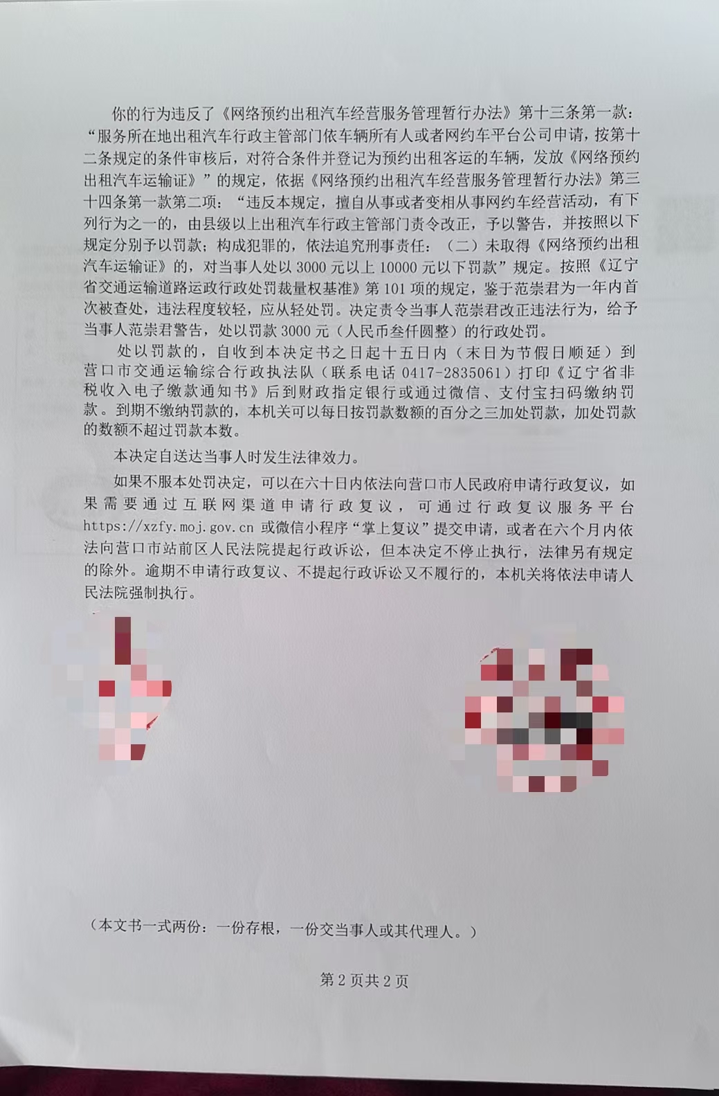 行政处罚决定书 辽营交罚决字【2025】1203062号