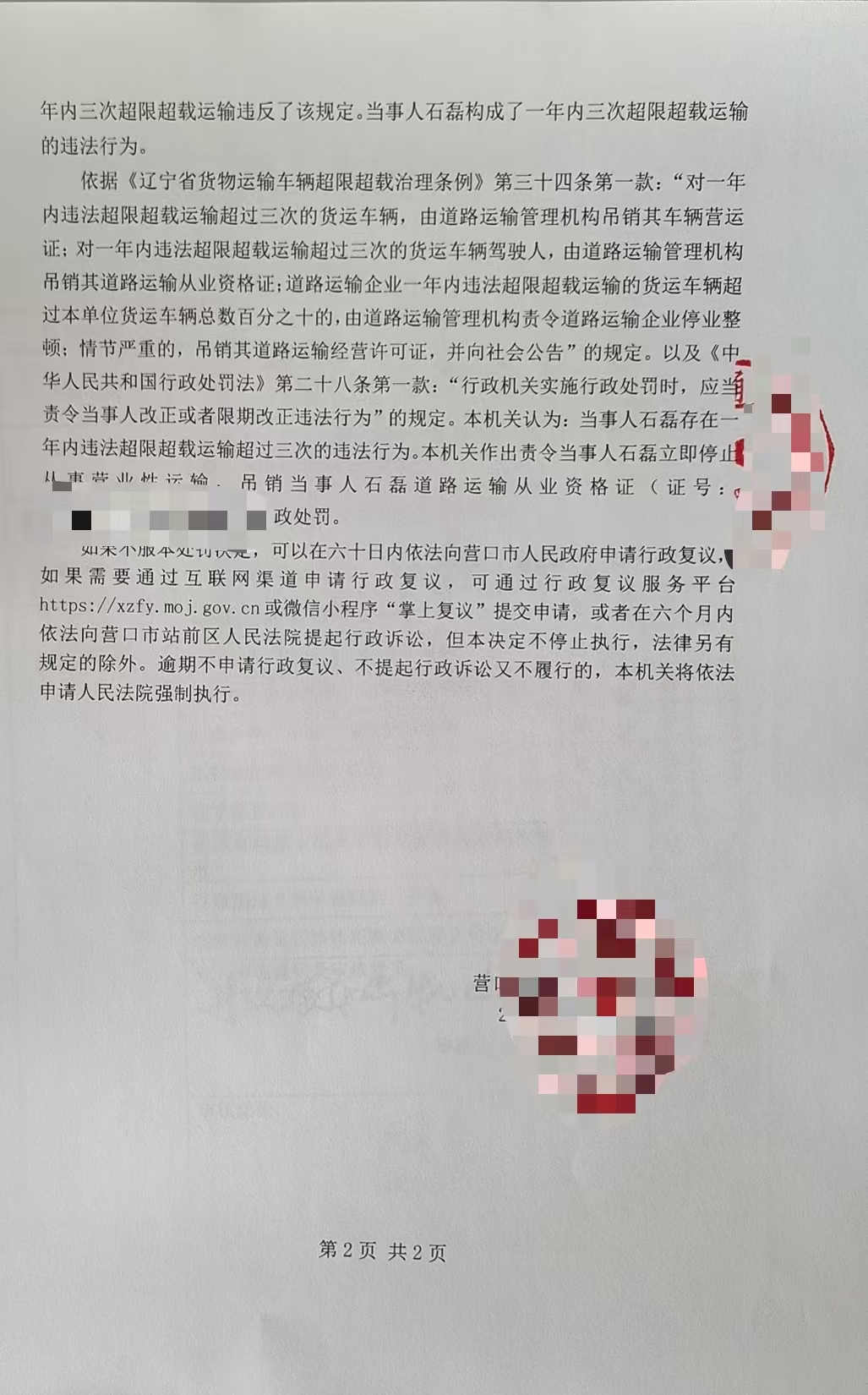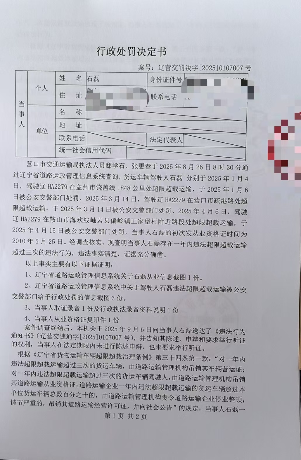 行政处罚决定书 辽营交罚决字【2025】0107007号