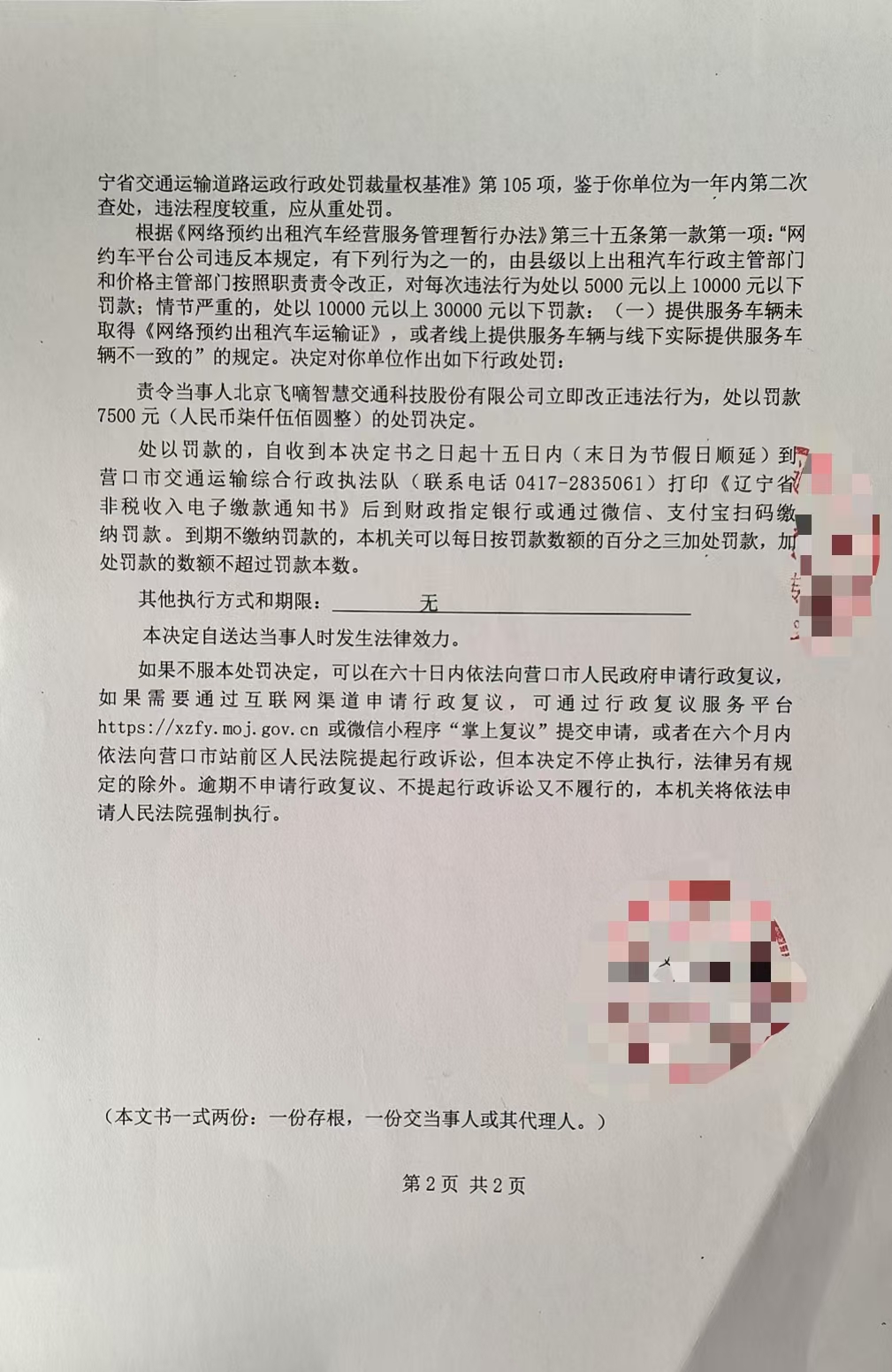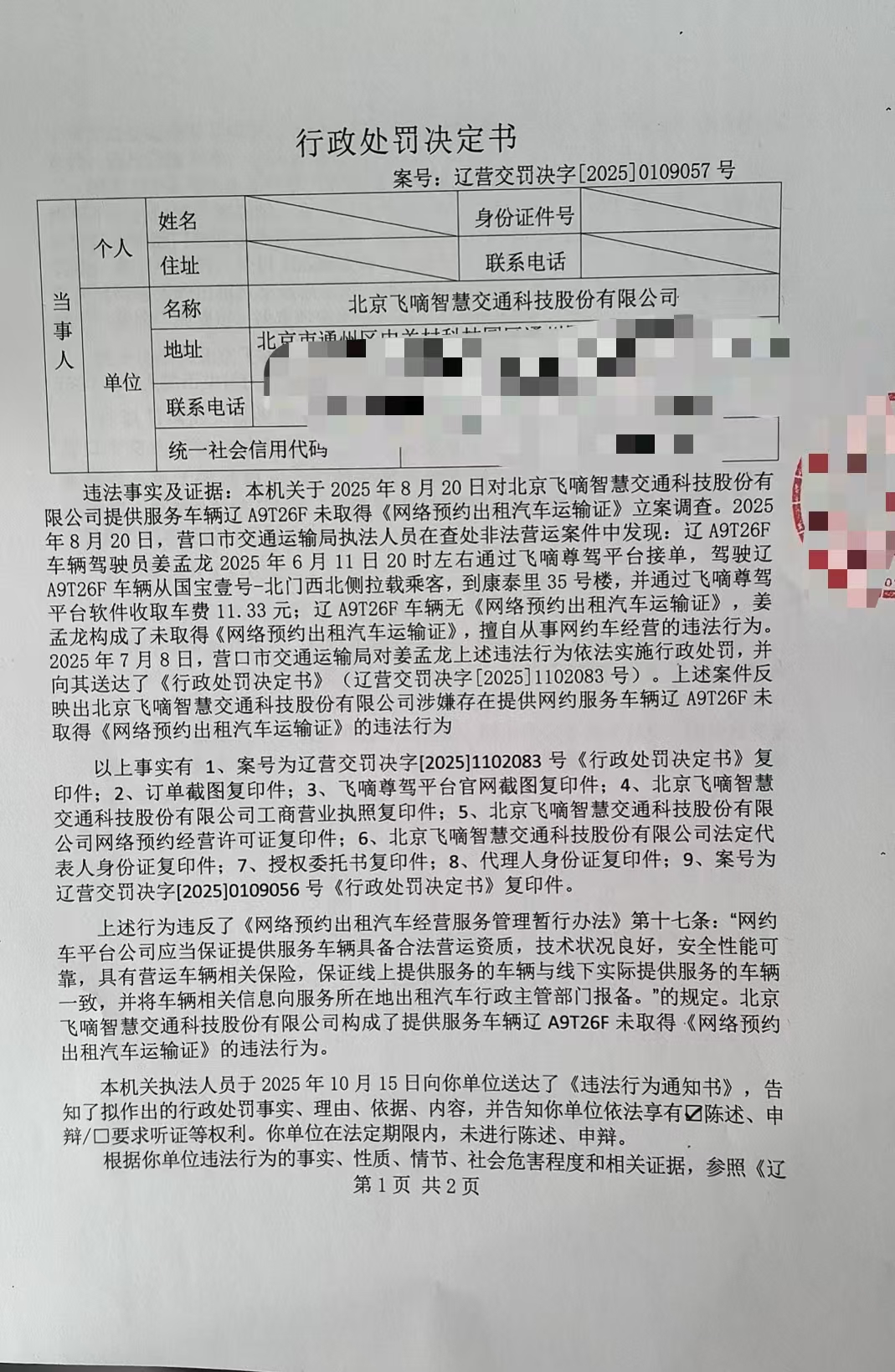行政处罚决定书 辽营交罚决字【2025】0109057号